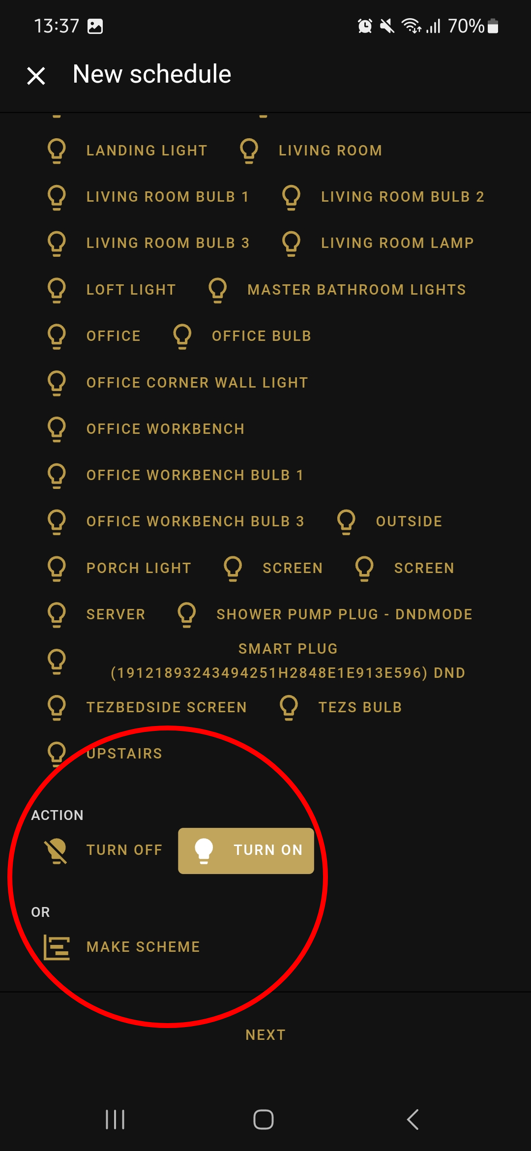 For the basic "TURN OFF" and "TURN ON" actions