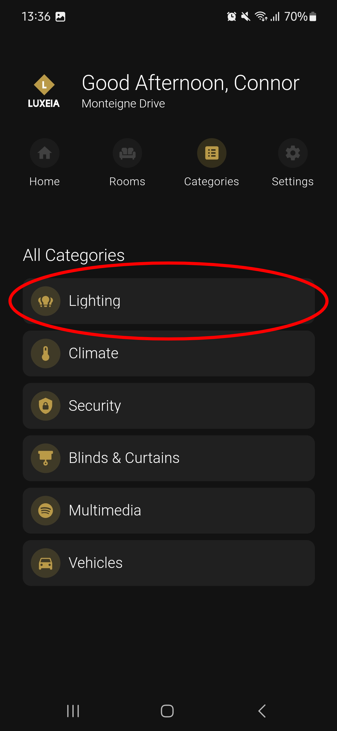 Navigate to the "Lighting" category.