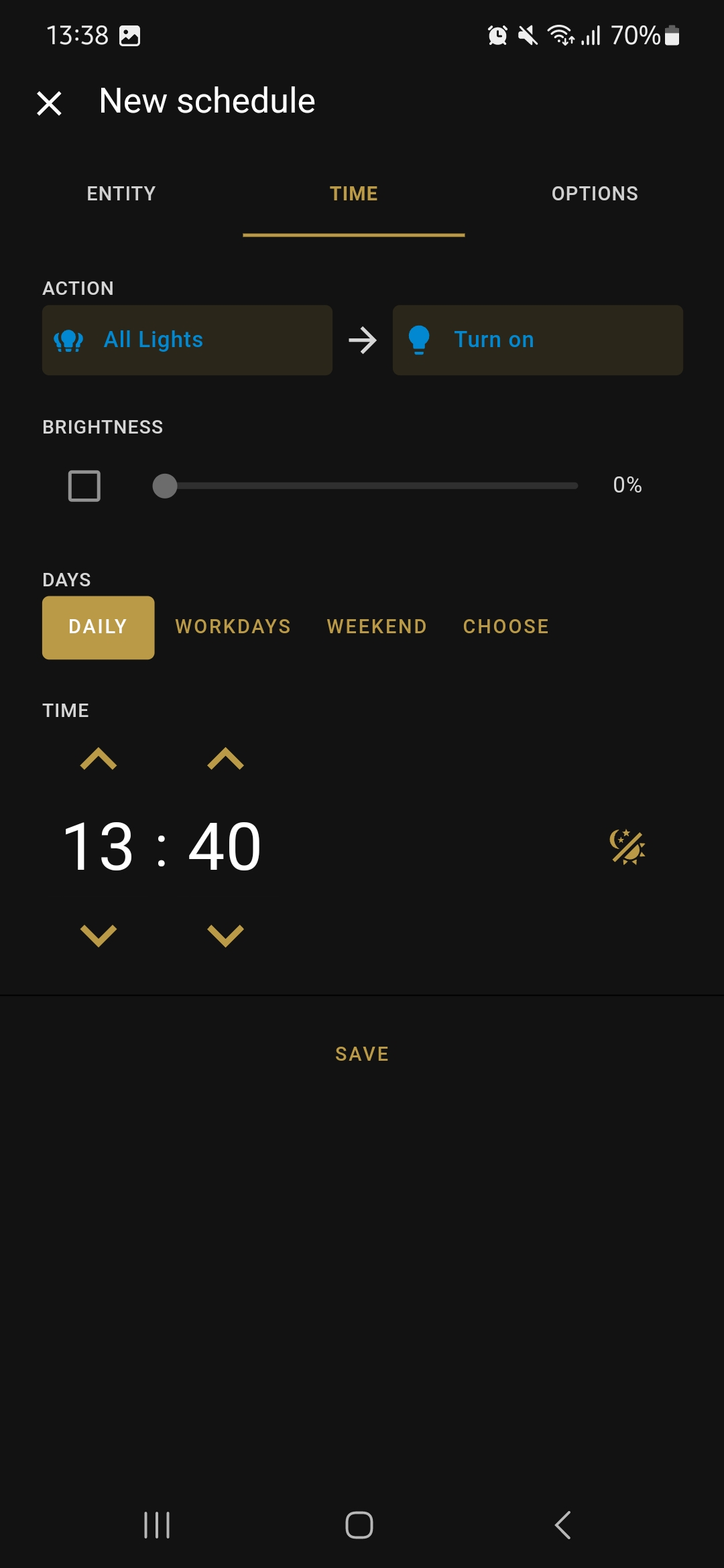 An unlimited amount of lighting schedules can easily be created through the Home Assistant mobile app.